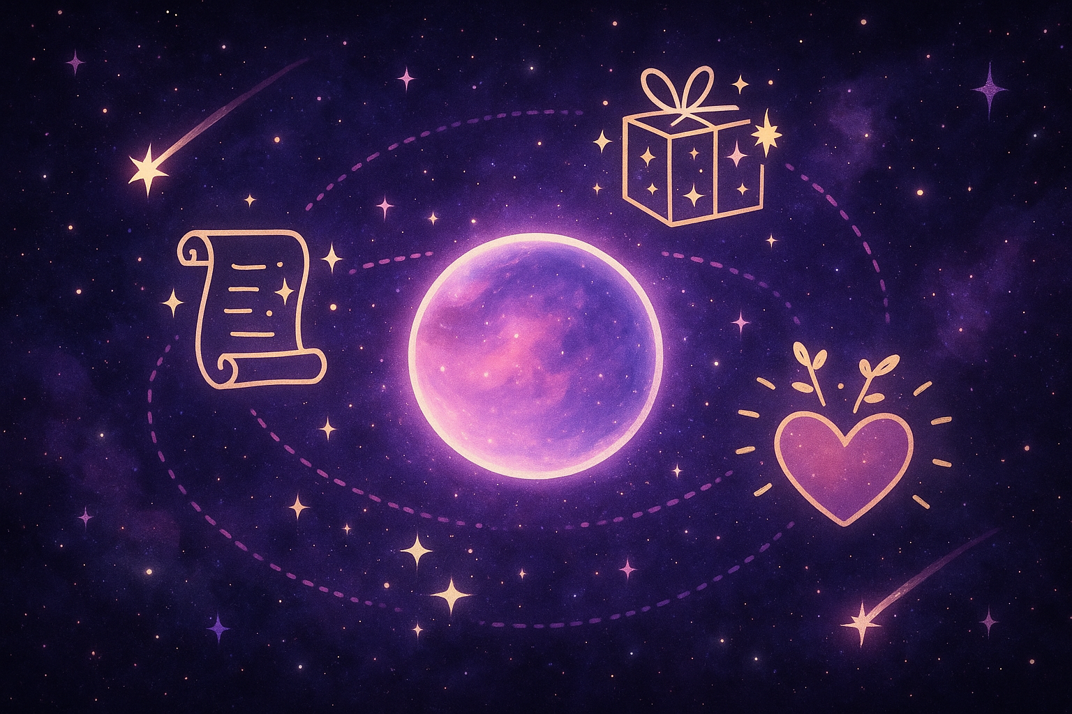 Redo keep everything the same just remove all words and put a planet in place where the words where
